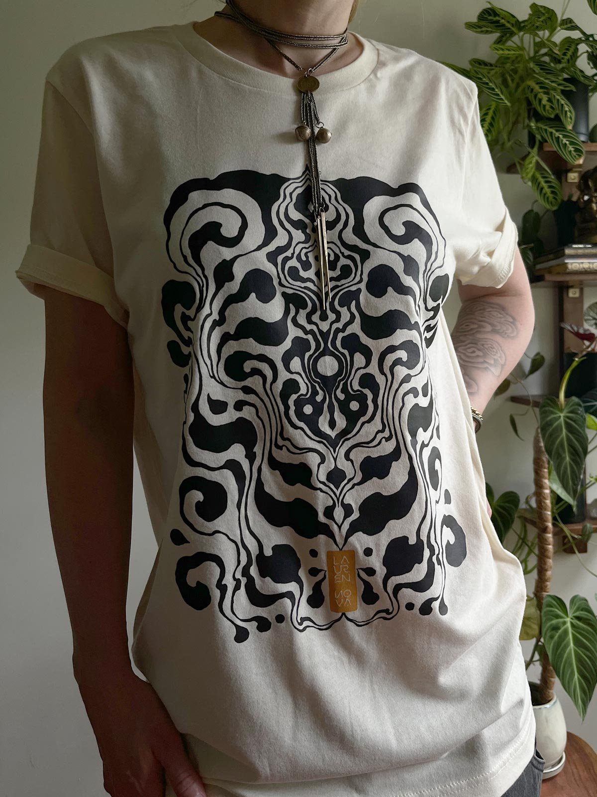 - Unisex cotton tee printed with "Quantum Ripple" original design by Lauren Nova